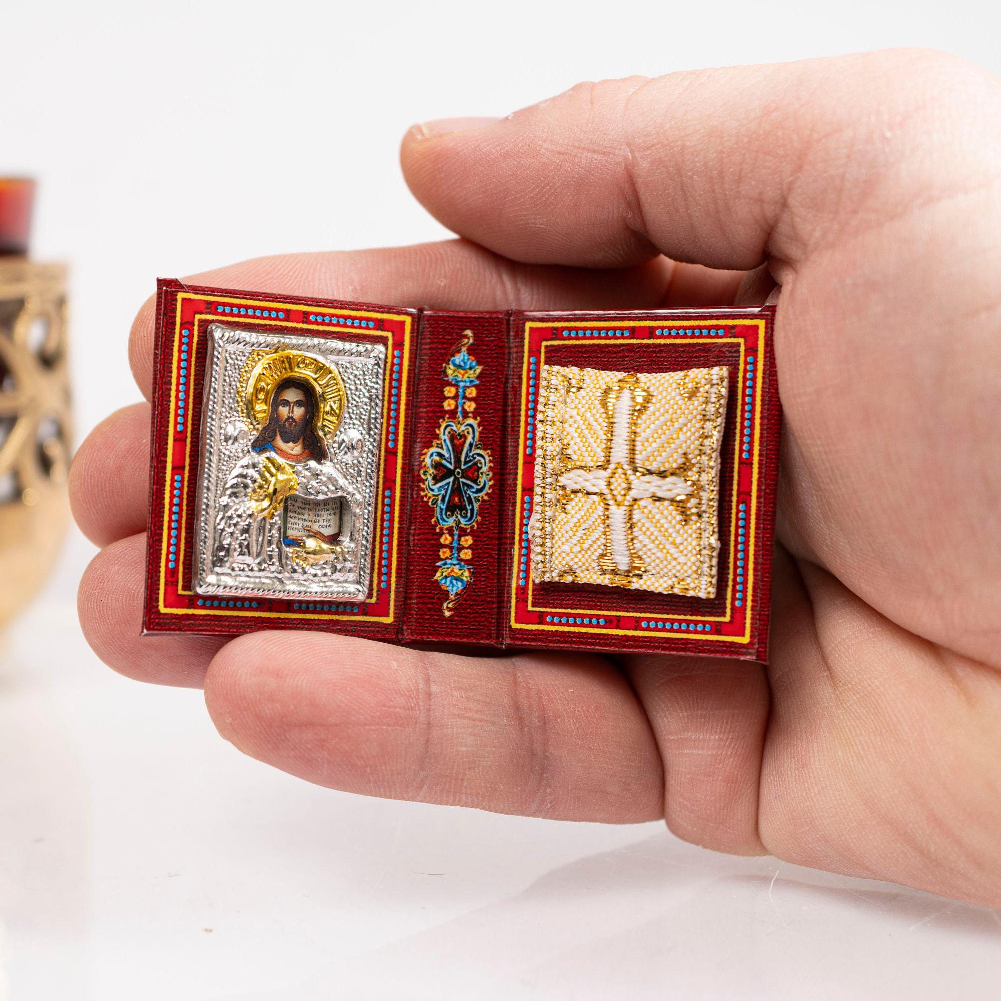 ✨This small Gospel features an Icon of The Jesus Christ and includes an amulet from the Monastery of Tinos.