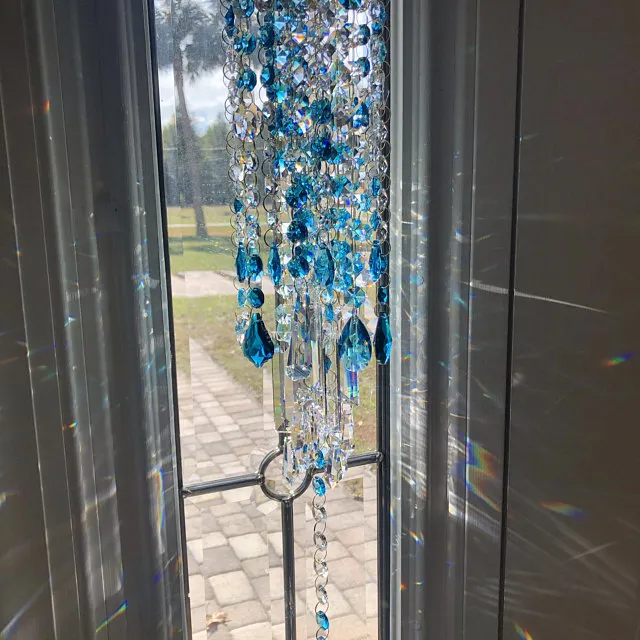 This crystal wind chime will bring sparkling rainbows to your garden, patio, sunlit window, or hang it over your garden tub.