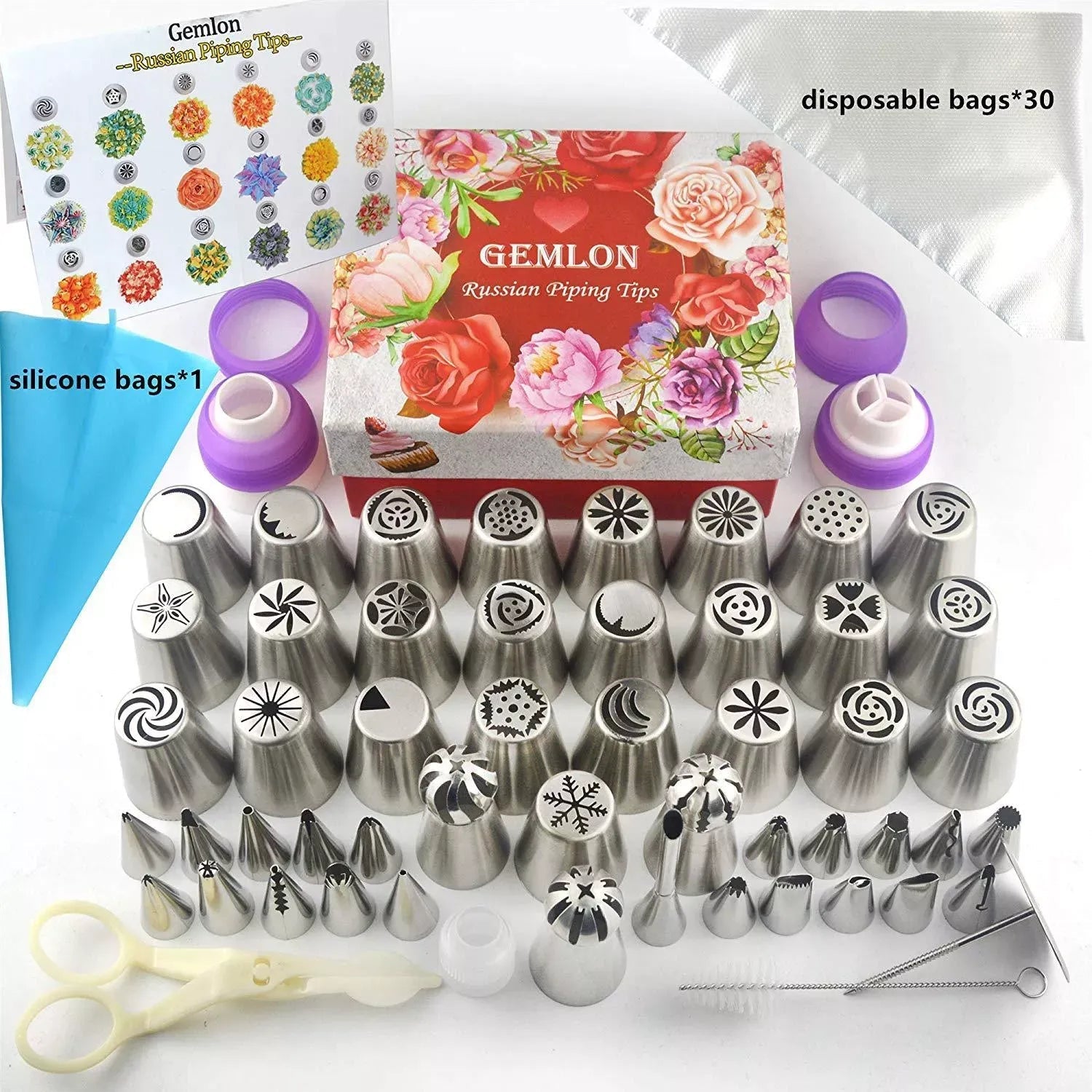 - Full Set(88 pcs): Nozzles*53PCS+COUPLER * 3PCS+Pastry Bag Material * 30PCS+Eva bag*1PC+Clean Brush*1PC+ Sissors*1PC