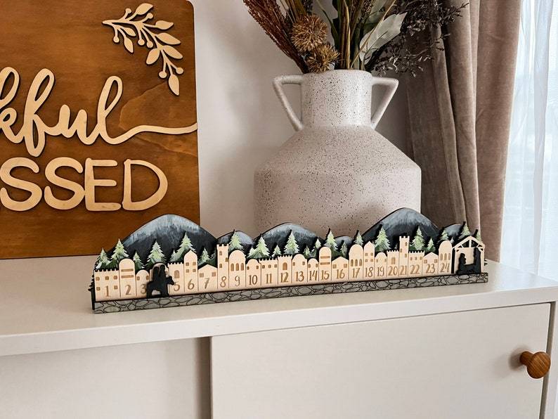 ✨With this religious holiday sign, move Mary and Joseph along their journey to Bethlehem up until Christmas where the piece switches out to a nativity scene. Use this christian themed Jesus countdown year after year as a way to remember our Savior throughout the holiday season.