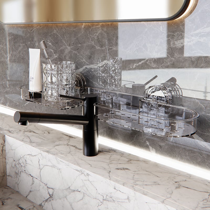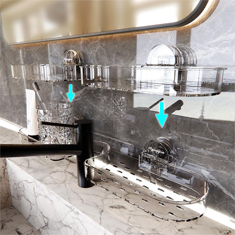 This Suction Cup Multi-Functional Organizer is made of PET+Stainless+PC, which is waterproof, rust-proof, fingerprint-proof, solid and firm, strong load-bearing capacity. Better surface gloss results in a better appearance.