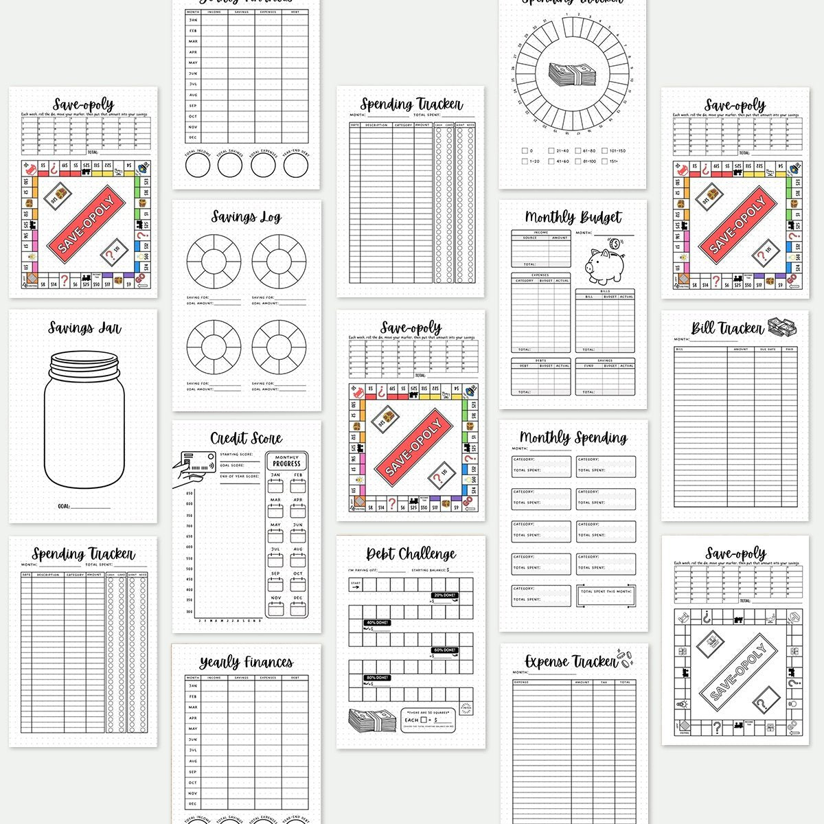 - Spending Trackers Bundle -Stay financially organized with our comprehensive printable journal page bundle, featuring trackers for daily, monthly, and yearly spending. Easily monitor your expenses across different timeframes, helping you to budget effectively and achieve your financial goals with confidence.