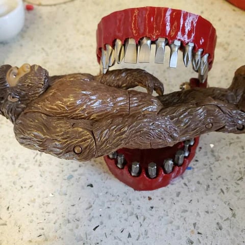 In case you haven’t heard, conventional tool boxes are totally old news. Why lug around a boring box? Just as the name suggests, this desktop storage device lets you keep all of your drill bits organized in a pair of realistic hinged dentures.