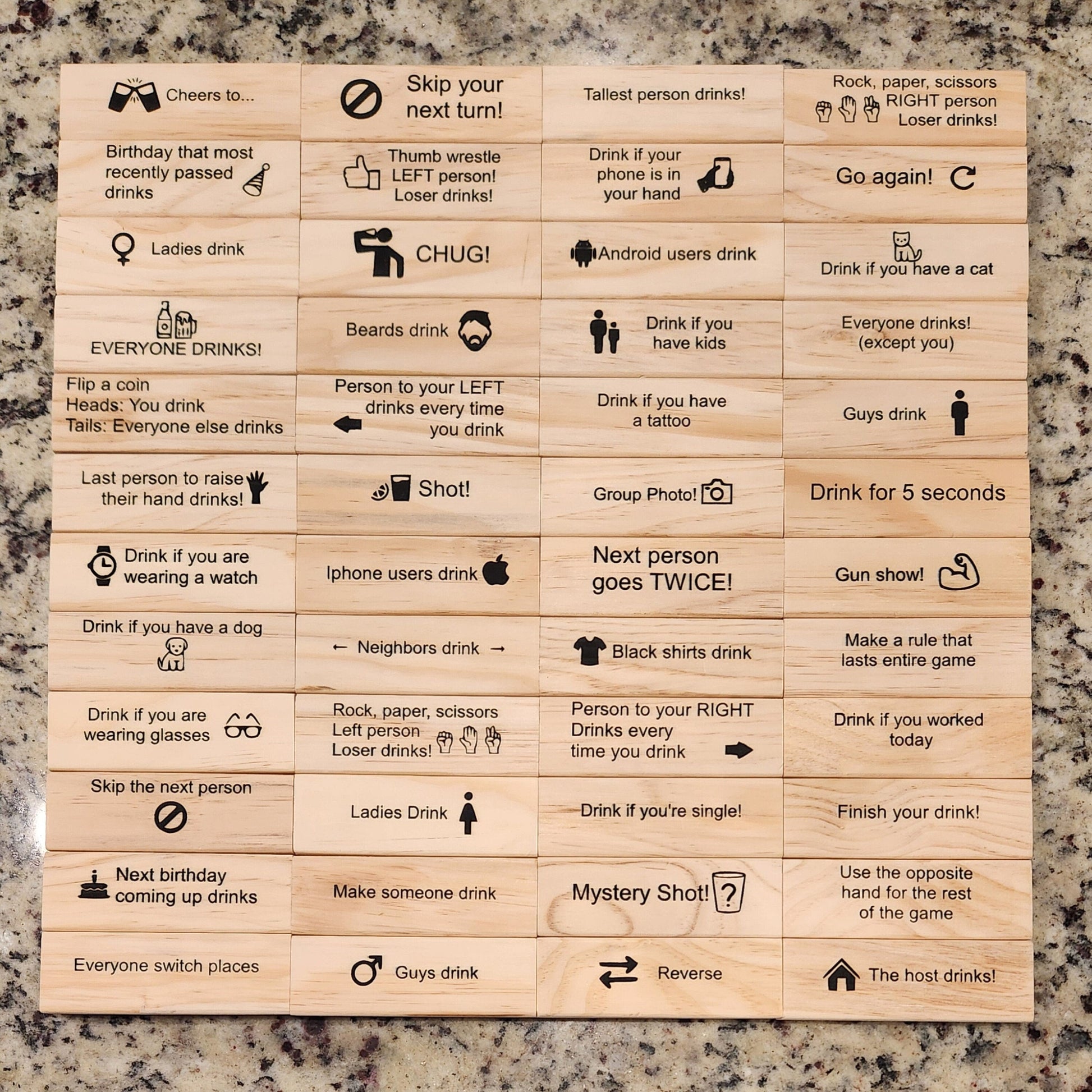 Make your next party more entertaining with our Wooden Stacking Game. Featuring 48 blocks with exciting instructions for fun drinking and party games, it's perfect for competition and unforgettable memories.