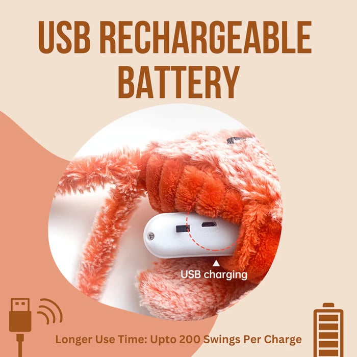 The lobster toy will adjust its flopping speed according to the motion around it. If it detects that it's being played with, it'll flop faster. If it detects no motion, it'll slow down and eventually stop.