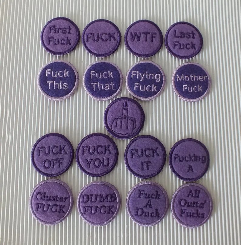 🎁The pouch comes stuffed with 17 different "fucks" to give coins embroidered on felt