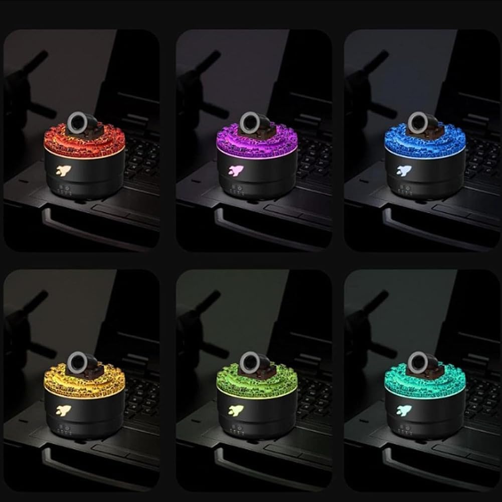 The turret humidifier features a realistic volcanic lava simulation design, combining mist with an intricate cracked surface. Its unique aesthetic creates a fun and cozy atmosphere, making it an eye-catching addition to any space.