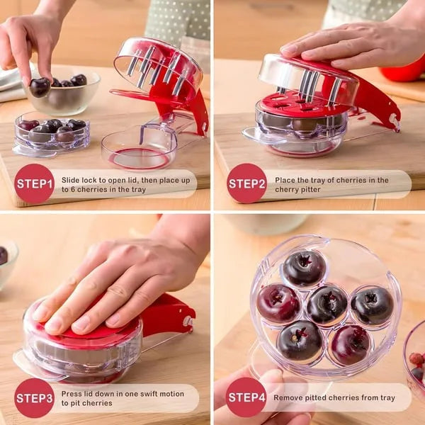 Unique Design Cherry Pitter: You can easily pit up to 6 cherries at a time without damaging the flesh, saving you time and energy and enjoying the fun of food preparation
