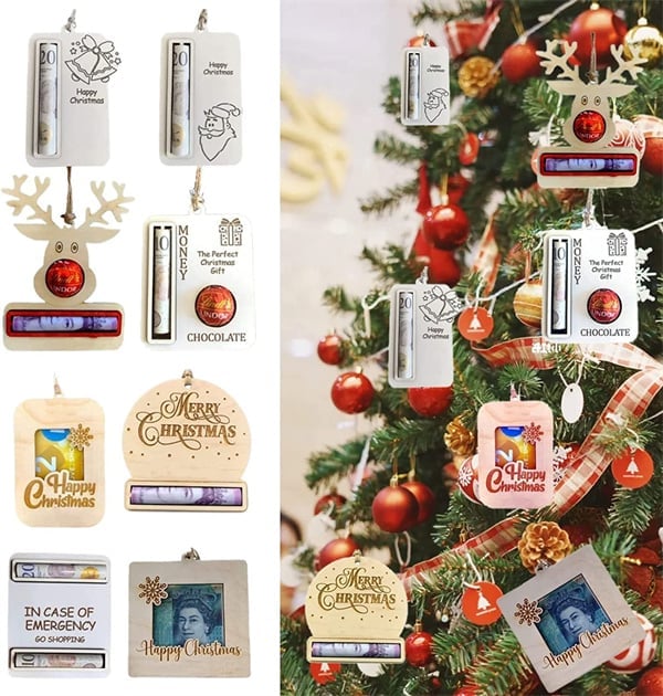 💕Personalized hand-carved money and chocolate tree decorations are a fun and exciting way to give money and chocolate as gifts this Christmas.