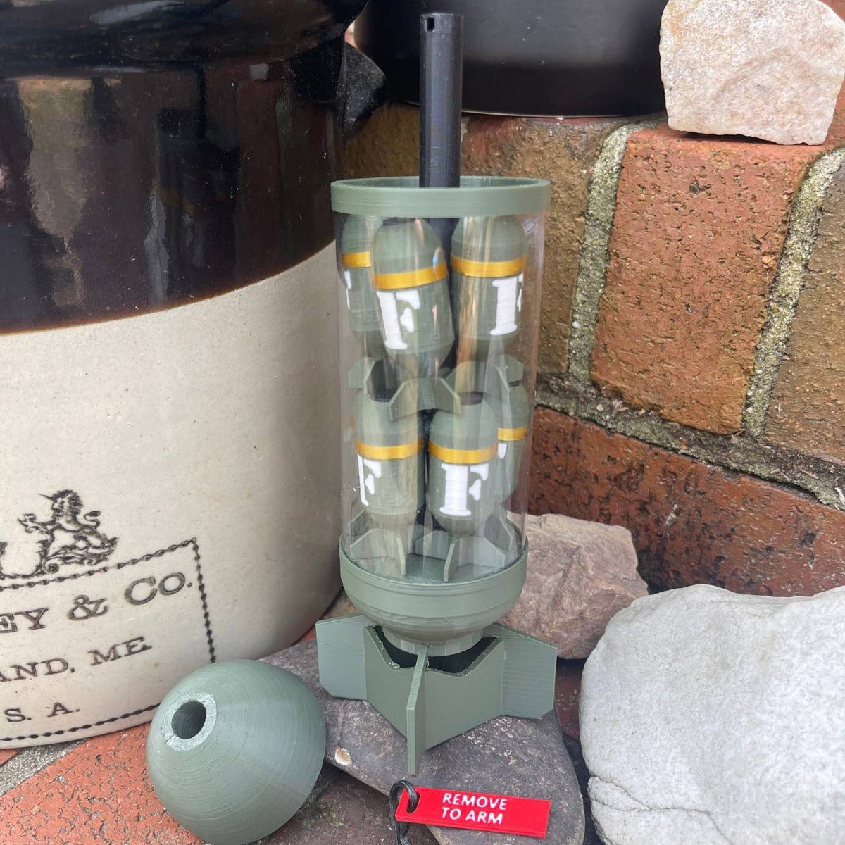 The clear plastic bomb body of our Cluster F-Bomb is designed to withstand the test of time. However, please note that it may not be immune to scratches. Rest assured, this limited item is made to last and deliver maximum impact.