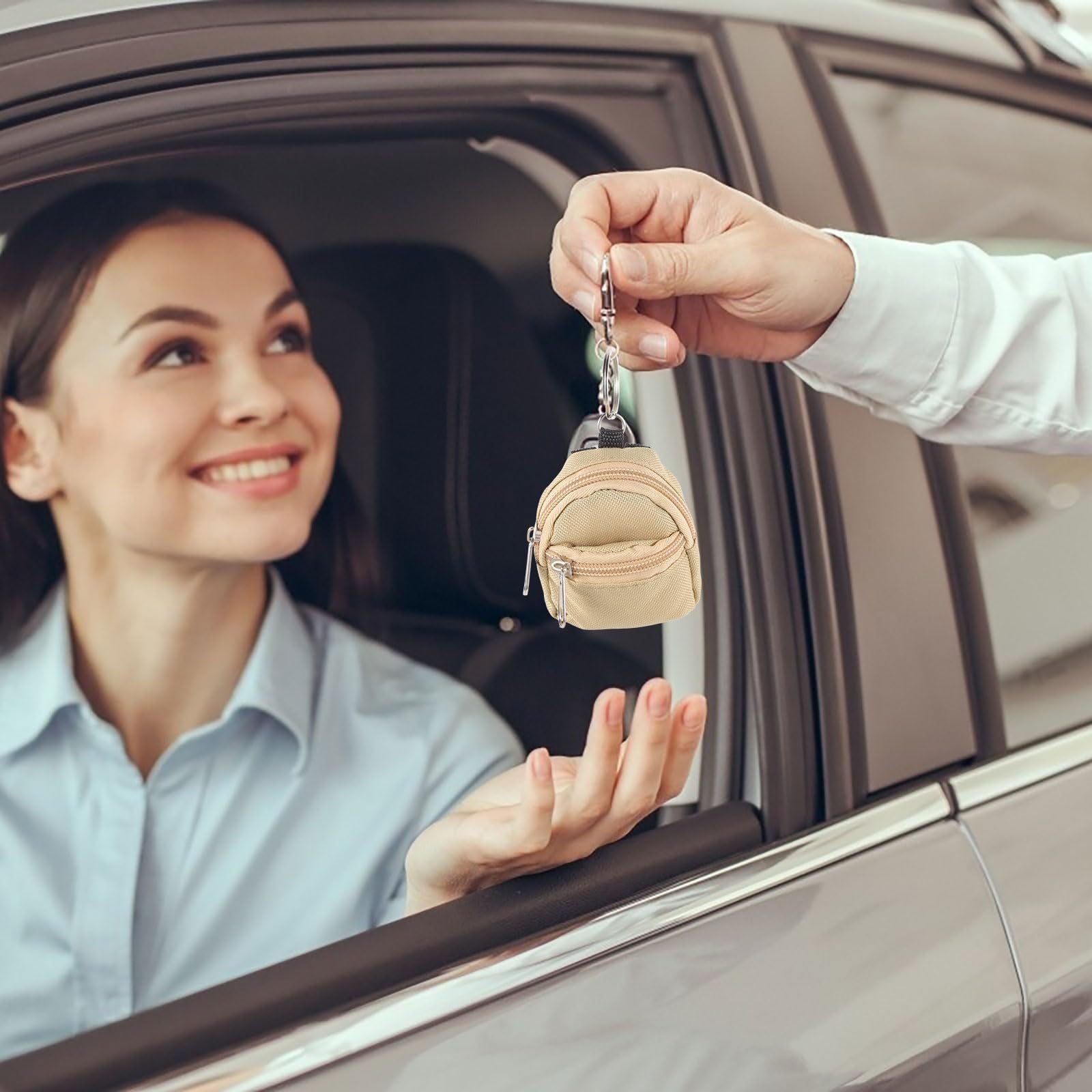 - DURABLE: The key chain in the small backpack is nylon material which is durable, practical and creative.
