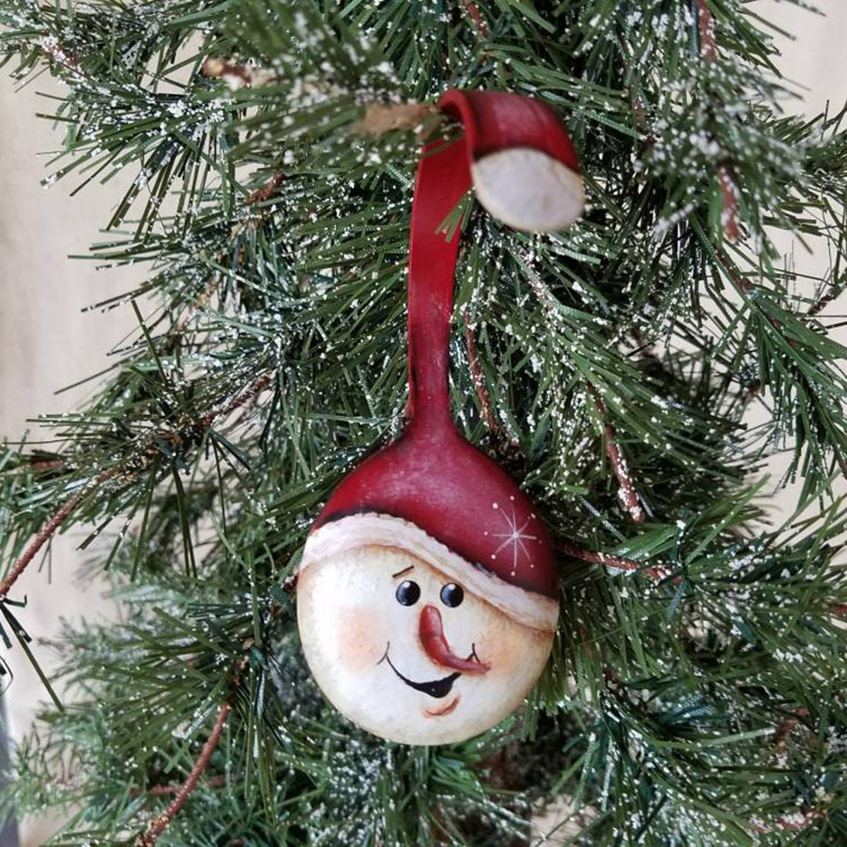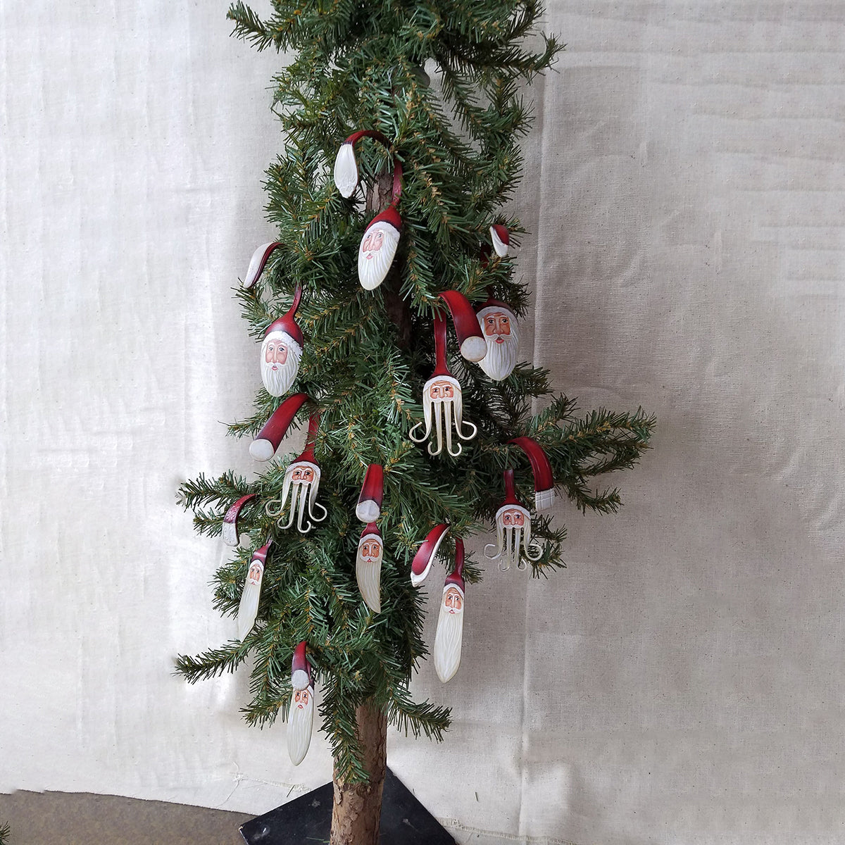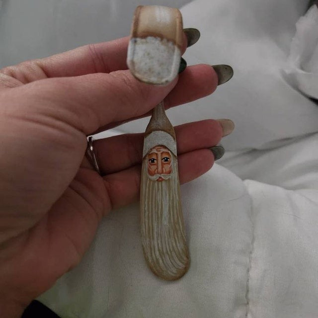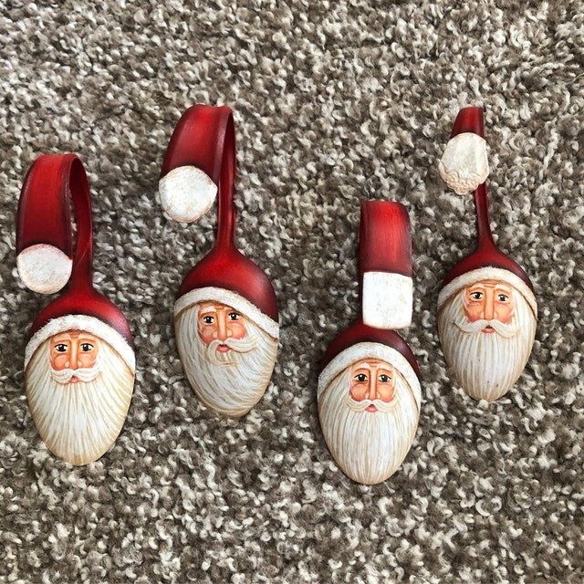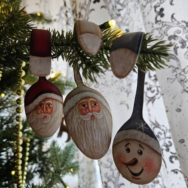 These Curly Santa ornament are hand painted with acrylic paints and finished with a durable lacquer. It is hand curled and shaped to form the Santa beard.