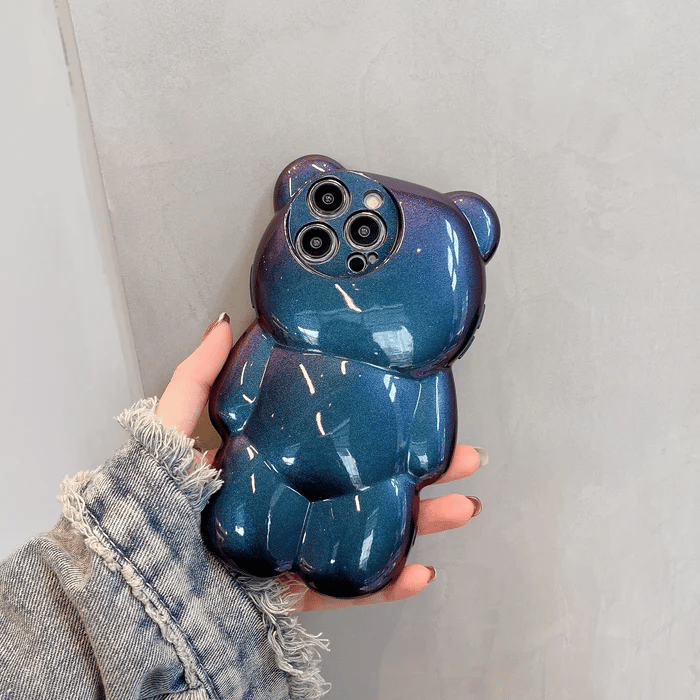 【Unique Design】:Bear shape and glitter color design, craftsmanship using water stickers. Bling blue&purple color 3D bear case, light but durable, novel and stylish.