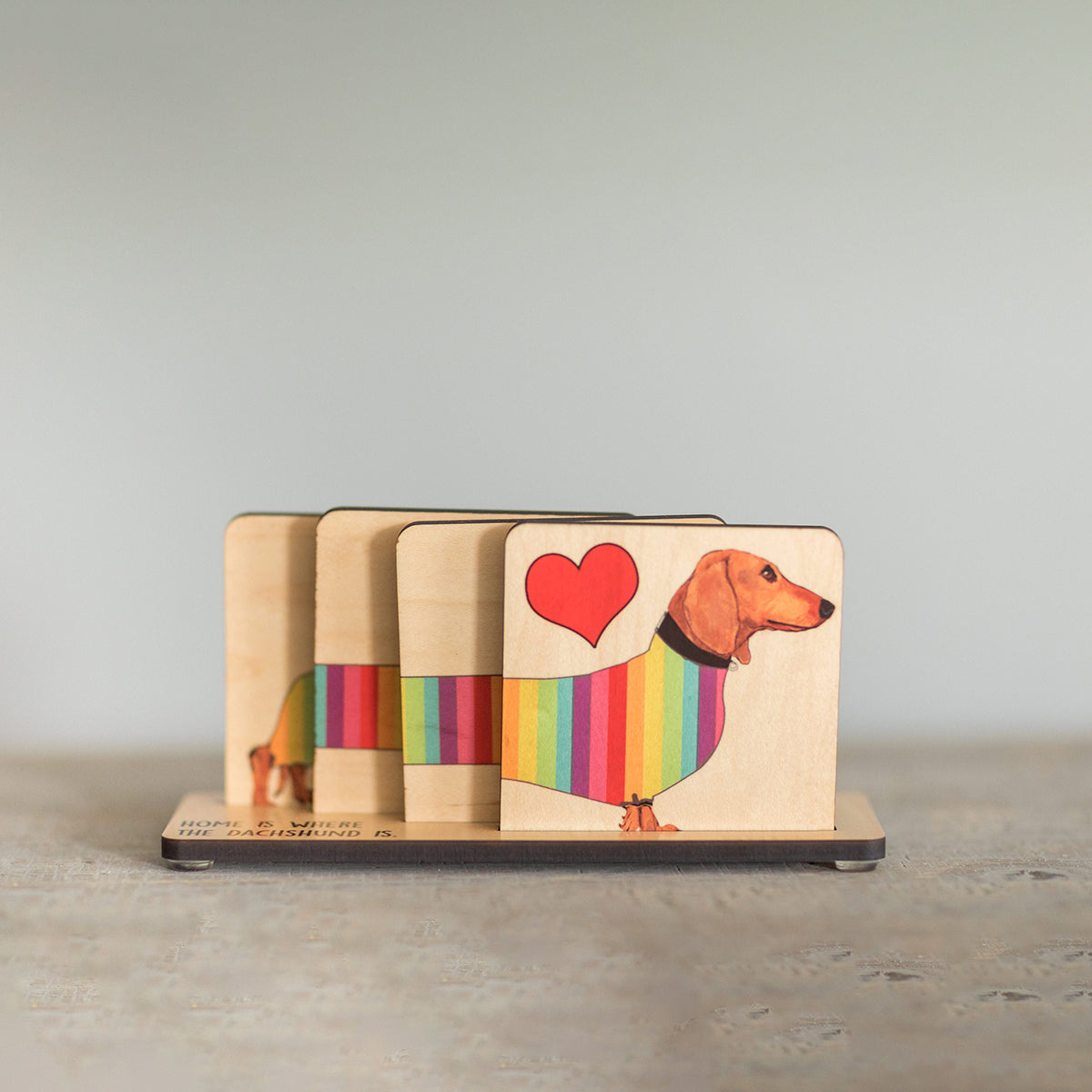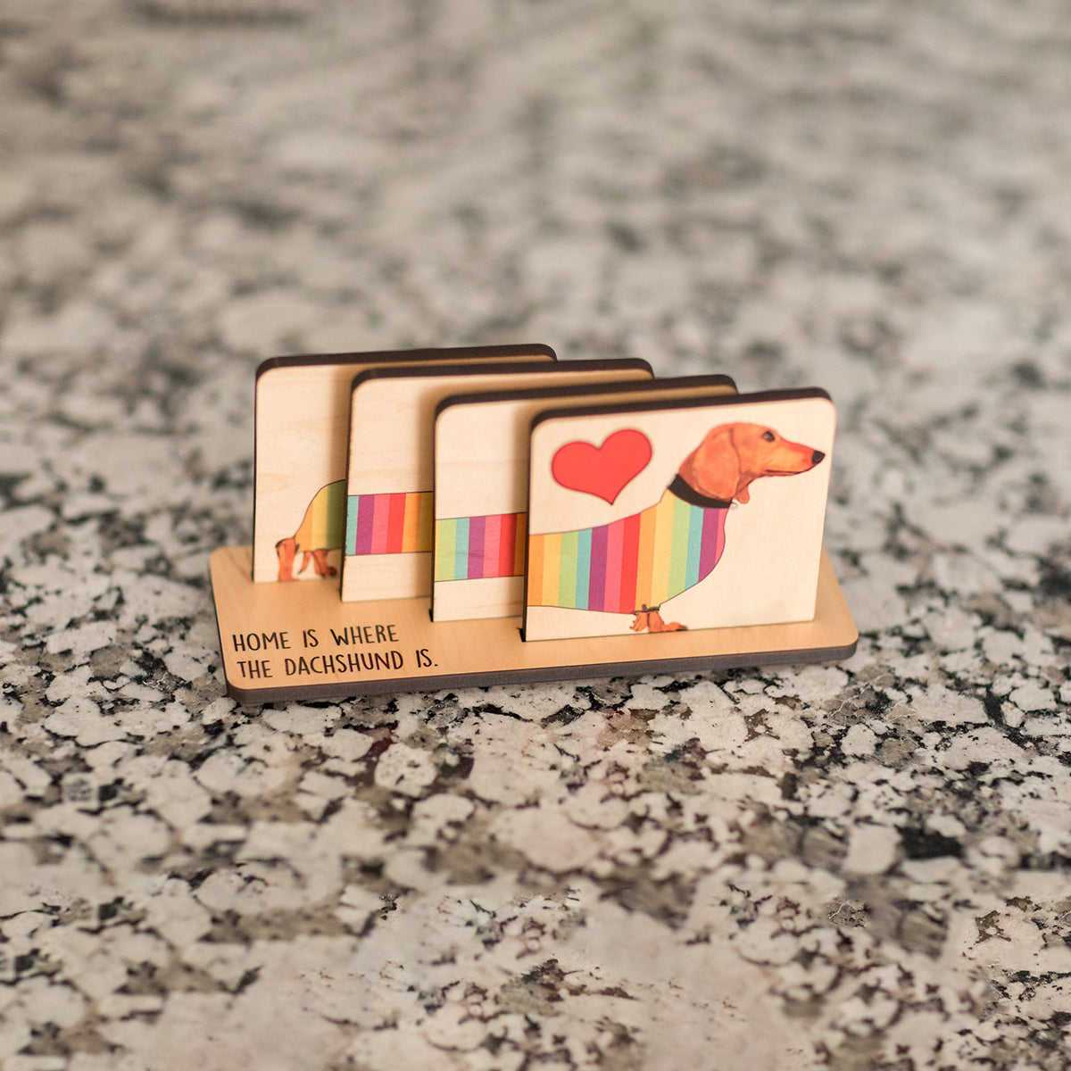 ✨Add a touch of whimsy and functionality to your home with our charming Dachshund Wood Coaster Set.