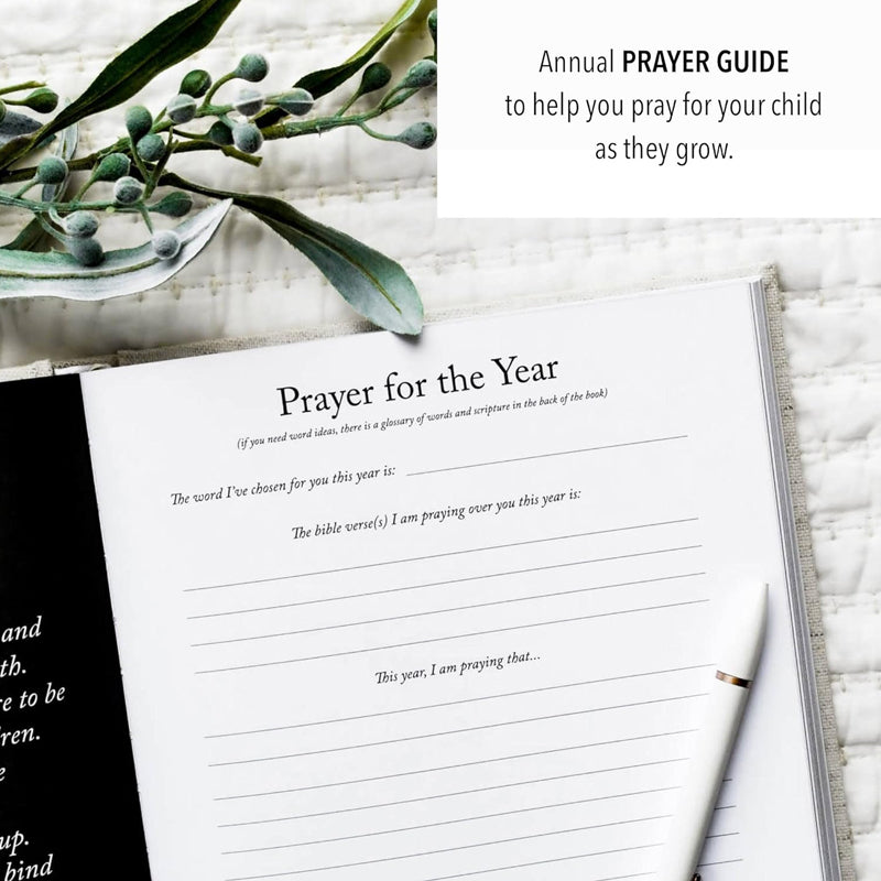 Welcome to the World, Little One: Our baby memory book is a mix of memory keeping and prayer journaling for parents as their son/daughter grows into his teens. Begin the year with prayer and end each year with your favorite memories in our baby book with prompts.