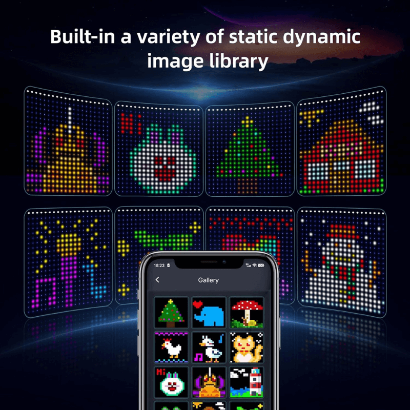 400 LED lamp beads, 228 static + dynamic patterns can be switched at any time, and you can control the display speed, brightness color or display position, etc, upload your own patterns and gifs, text the word. The more interesting is you can also convert static images into dynamic images! Come and unlock millions of customized decor lighting gameplay!