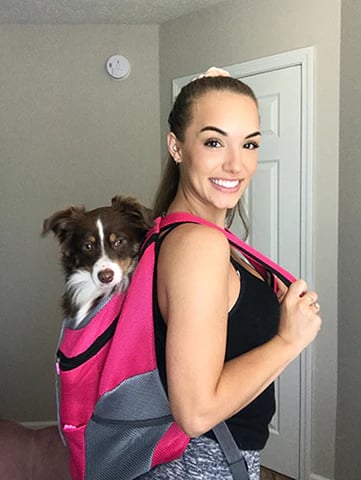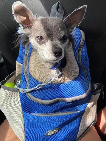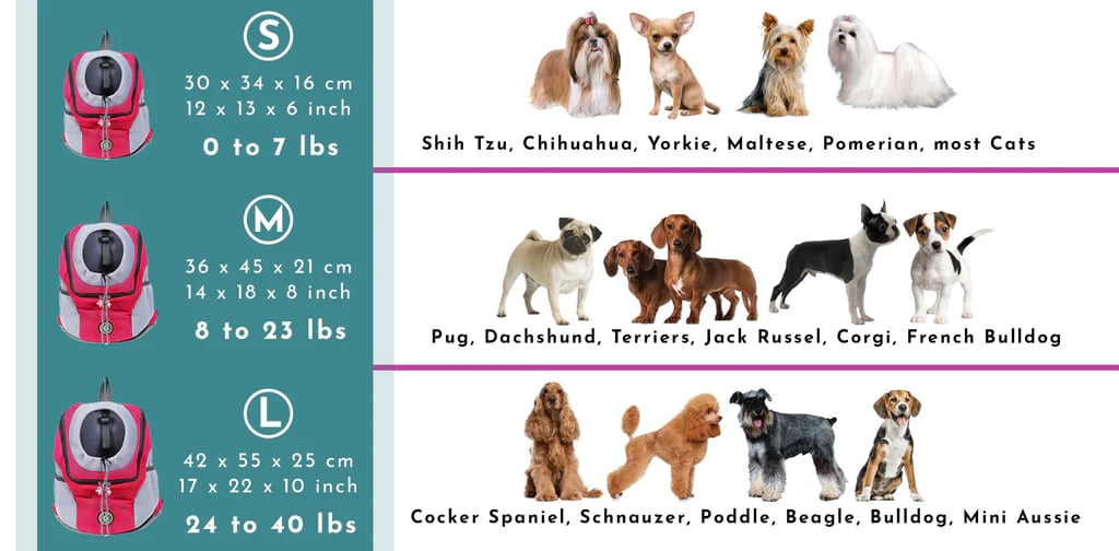 It’s equipped with cooling panels on the sides and adjustable pockets. The straps are moisture-repelling and air-permeable. The Petyfy™ Dog Back Bag comes in sizes extra small to large as five diffrent colors. It can carry dogs up to 40 lb.