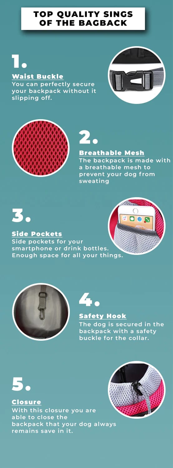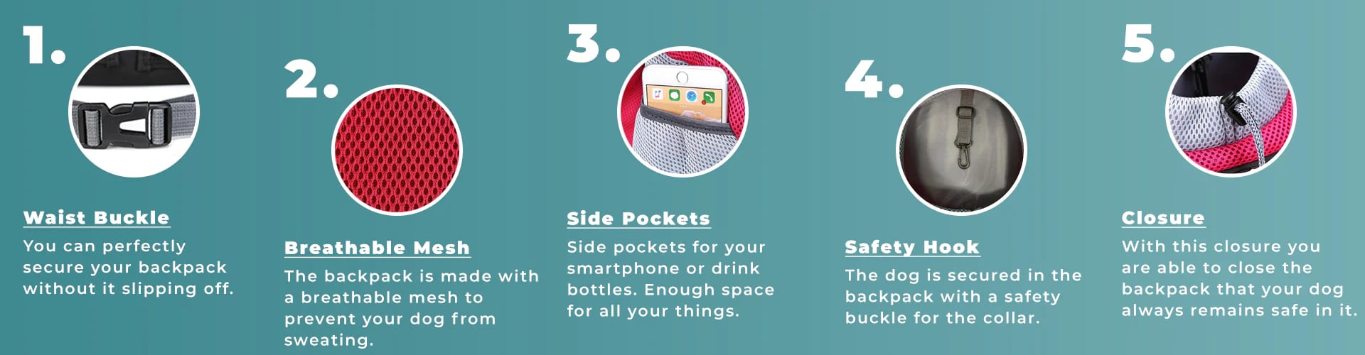 The Petyfy Dog Backpack is made of high quality materials. Both sides has a pocket to store toys, treats and water for them.