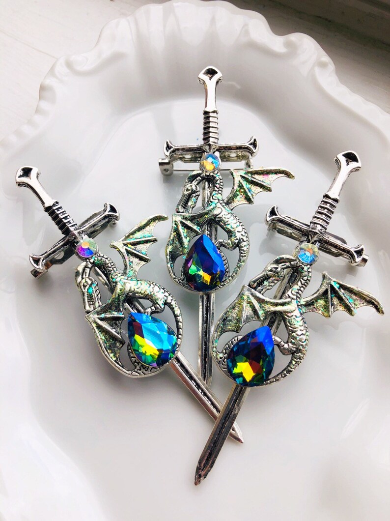 Add a touch of mythical charm to your everyday outfit with this stunning Dragon Sword Pin.