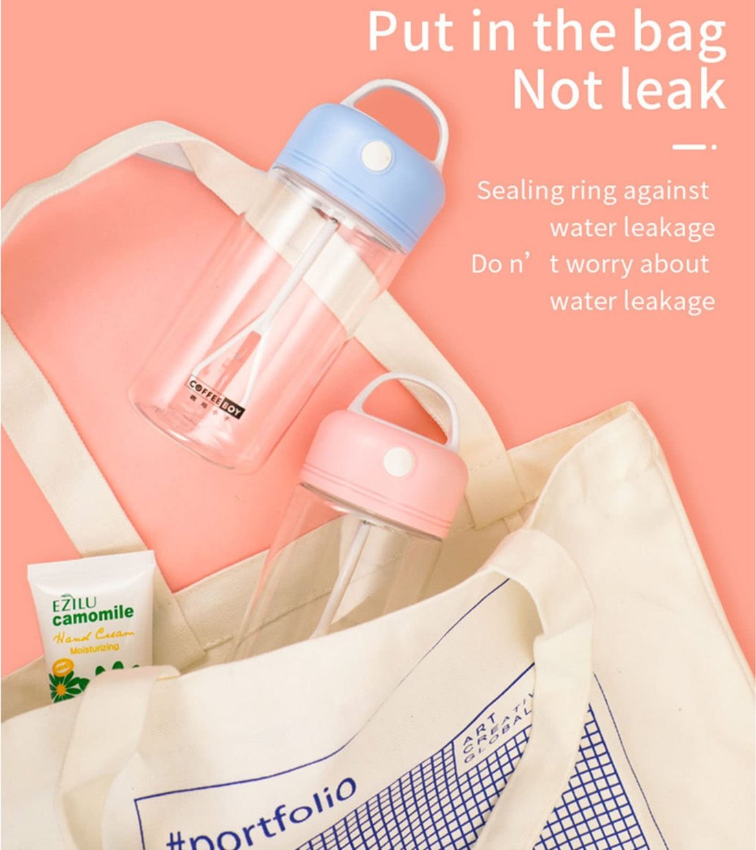 Good Sealing Performance: there is a sealing ring on the lid of the cup, and it will not leak if it is shaken upside down, or worry about sprinkling when carrying in the bag.