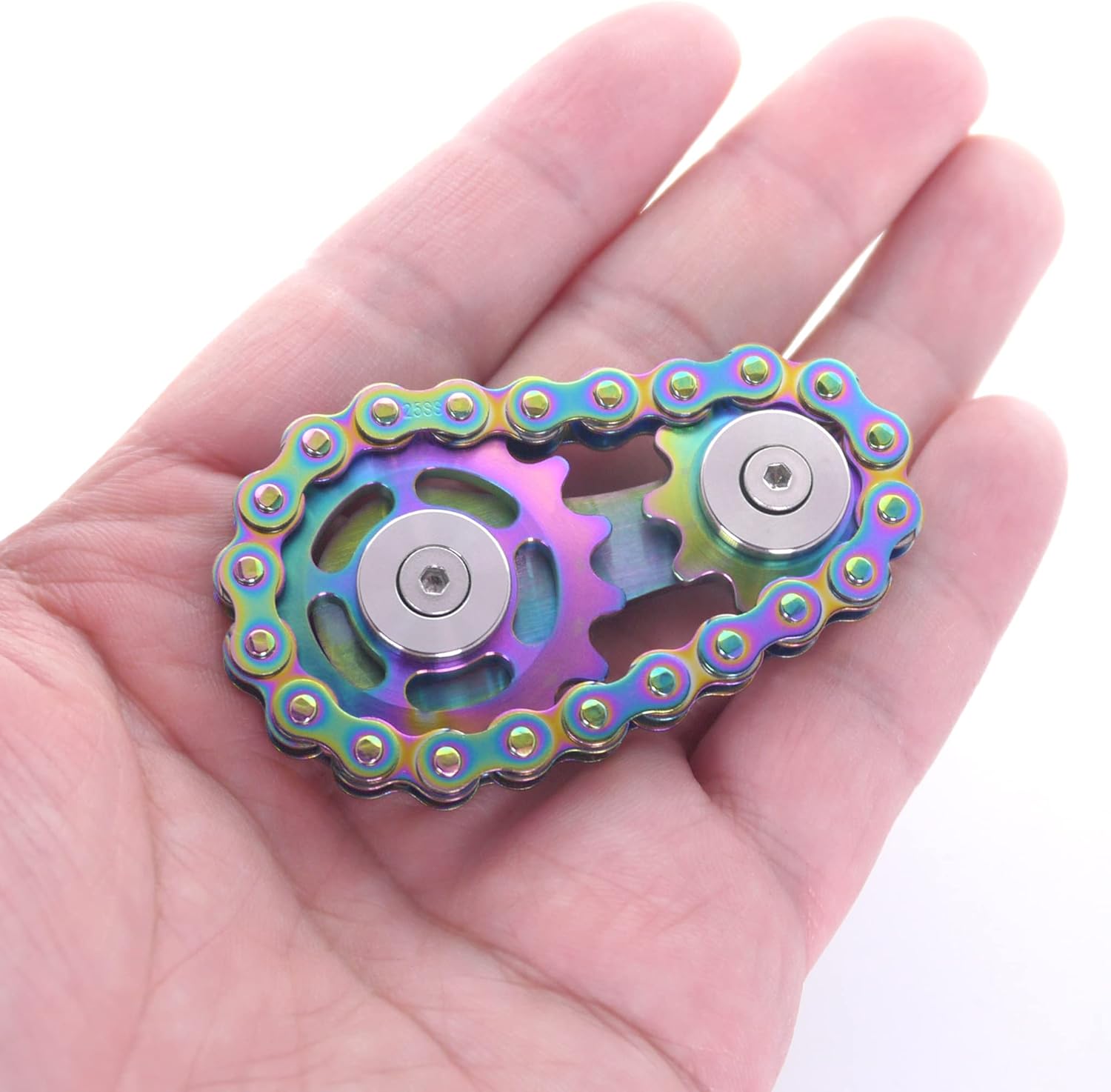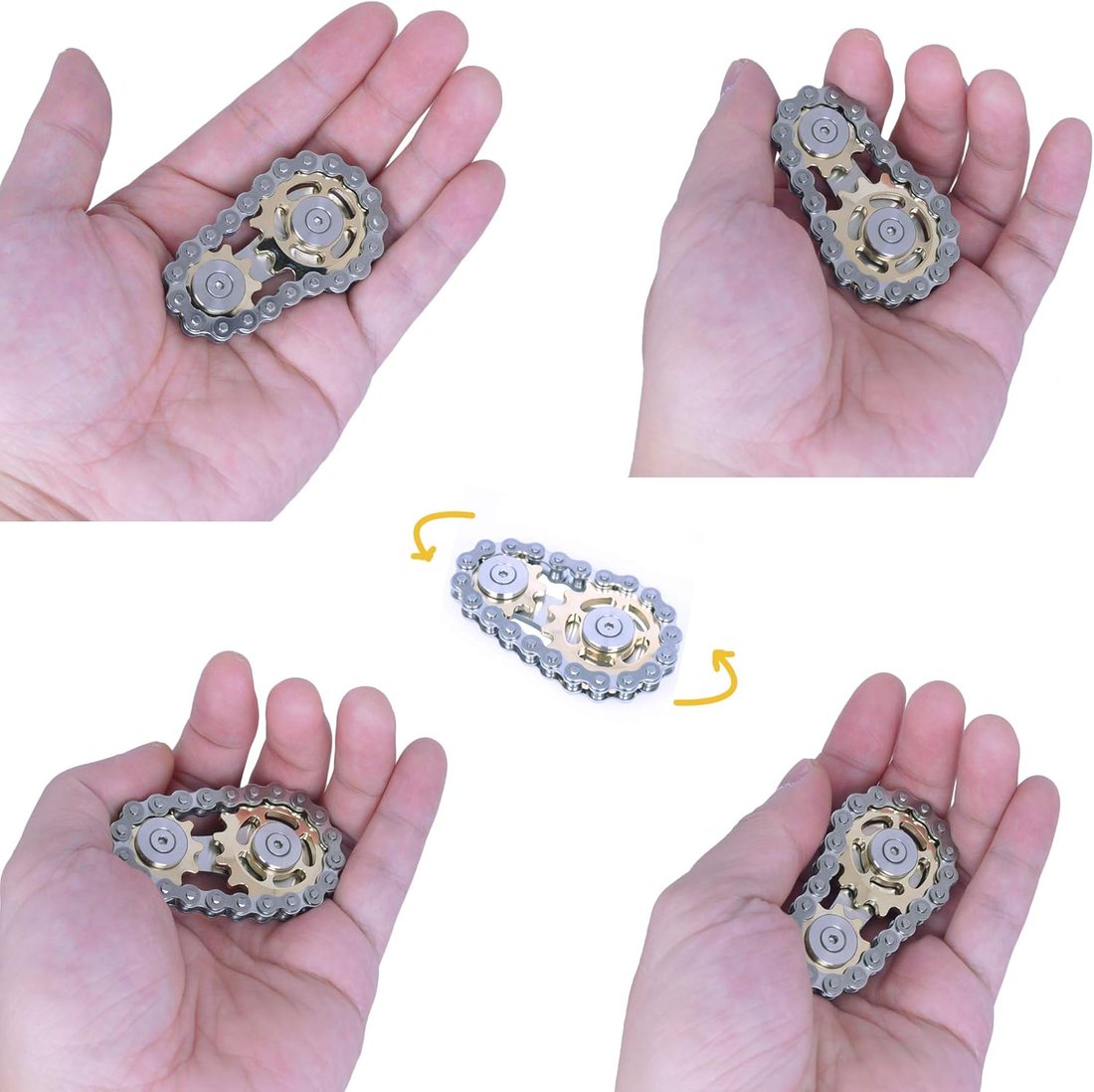 Multiple Spinning: You can spin it by gripping the button at one end of the chain with your thumb and forefinger, or roll it in your hand and on a table. Creating a relaxing sound like a bicycle chain.