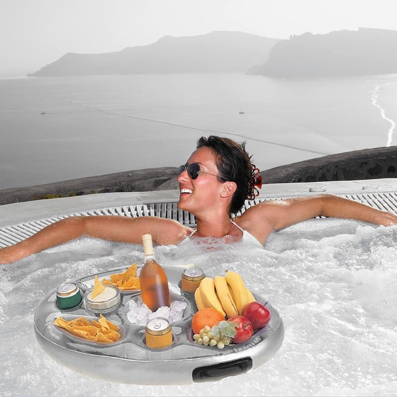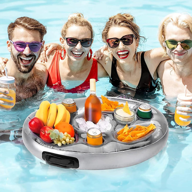 - Put The Everything You Need In The Pool - Innovative, one-of-a-kind inflatable drink holder designed to keep everything you need within arms reach. Enjoy your vacation floating pool tray for food and drinks.