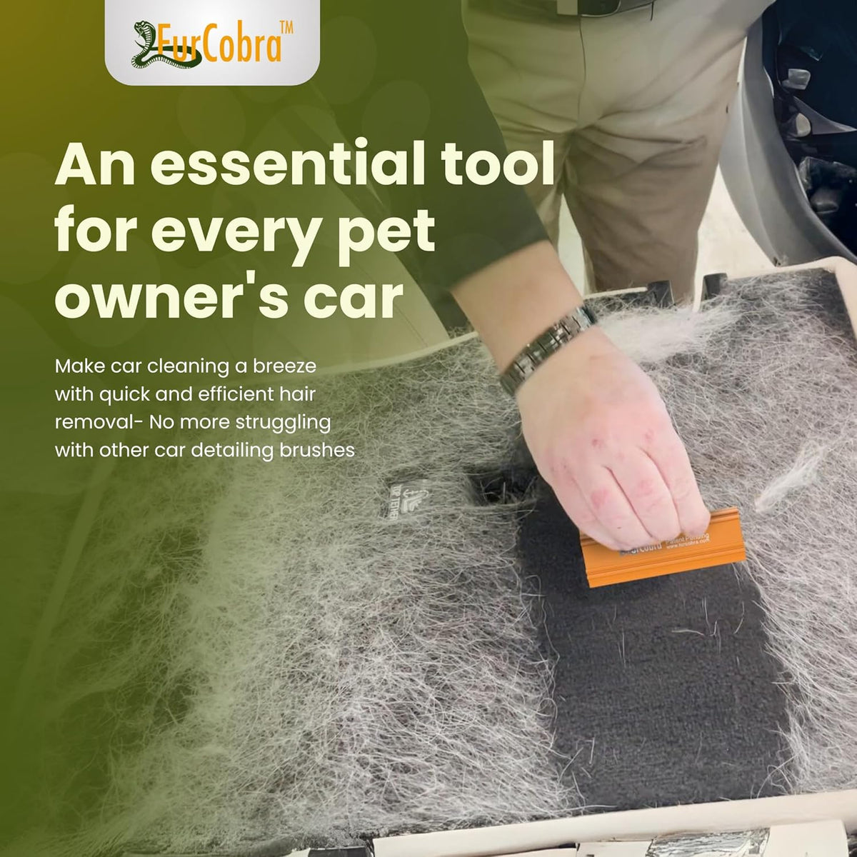 Say goodbye to stubborn pet hair with the FurCobra Pet Hair Remover Tool. Whether it's on carpets, furniture, or car interiors, this tool makes cleaning quick and hassle-free.