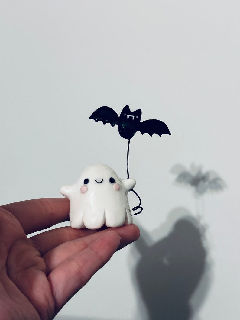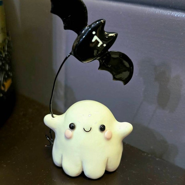 🖤Add some friendly fright anywhere with your very own ghost buddy (and bat friend)! This little ghost is the perfect touch to your Halloween decor or let him hang around all year for some spooky cheer!
