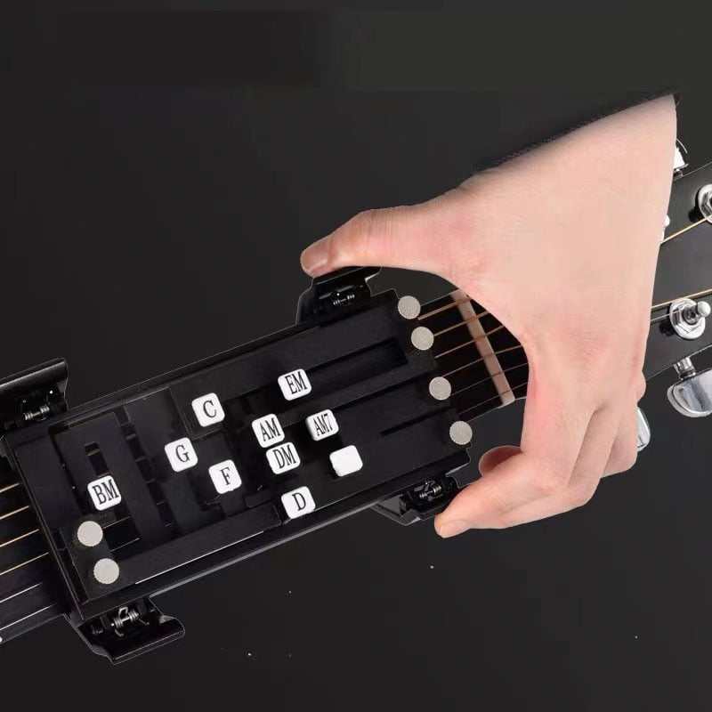- The Guitar Chord Presser is designed for effortless installation. Simply clip it onto your guitar, and with one click, it securely holds down multiple strings. This ease of setup ensures that you can start practicing almost immediately.