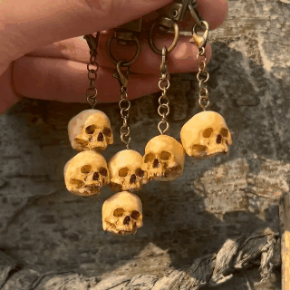 This is a Hand-Painted skull keychain that has been meticulously hand-sanded and hand-painted. .