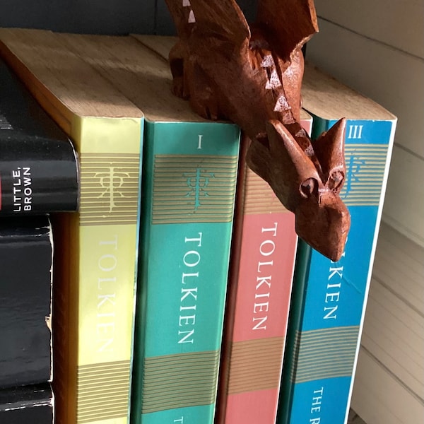 Small hand carved dragon, made from Jempinis wood then sanded and polished to rich warm finish with a soft beeswax polish. It measures from tip to tail 16cm and comes house trained and well fed!
