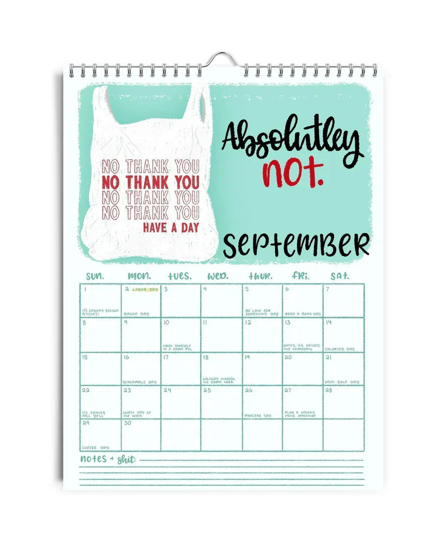 This calendar is not your typicaly date tracker, it is a celebration of the quirky, unconventional, and the downright fucking hilarious. Alongside traditional holidays, we've got your back with the funny national observances like "coffee day" and "pizza day".