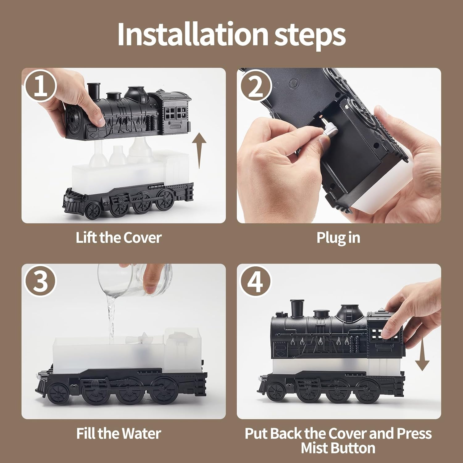 Humidifiers for Bedroom, Cool Quiet Steam Train Looking Mist Air Humidifier Diffuse