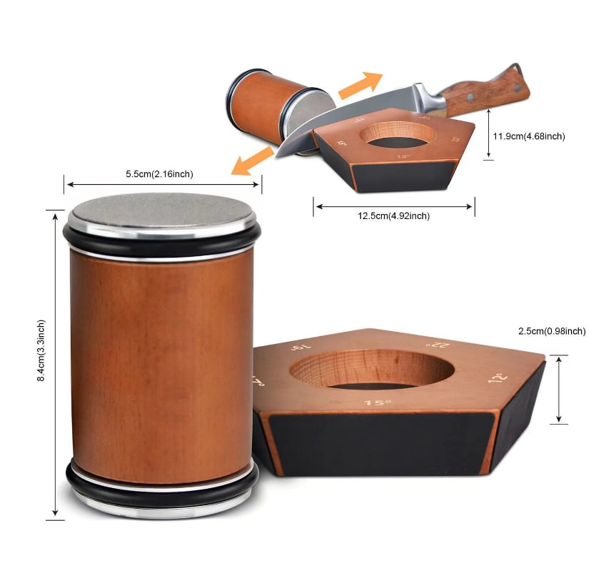 High-Grade Materials: This rolling knife sharpener kit is eye-catching everywhere and capable of achieving a consistently sharp edge on your knives. The roller and magnetic base are made of high-grade natural wood, the roller is equipped with diamond discs(400# & 1000#). Grinding with the diamond 400# disc and polishing with the diamond 1000# disc, you will always have a very sharp knife.