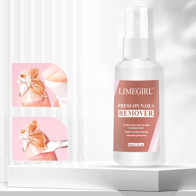 - Just spray gel nail glue remover on your nails and then gently remove the press on nails with an acrylic stick.