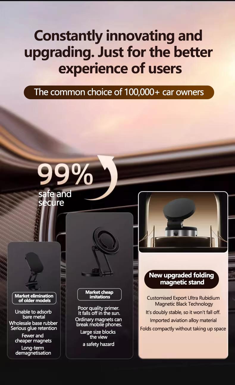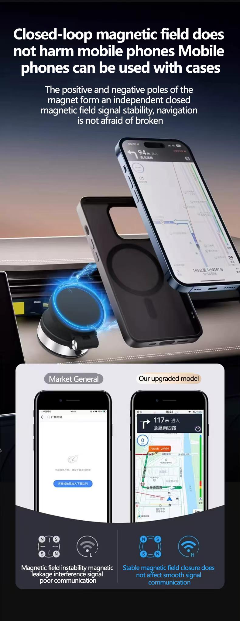 Enhance your driving experience with the Upgraded Magnetic Car Phone Holder. This phone accessory offers a strong vacuum suction for easy installation in your car, providing stability and durability.