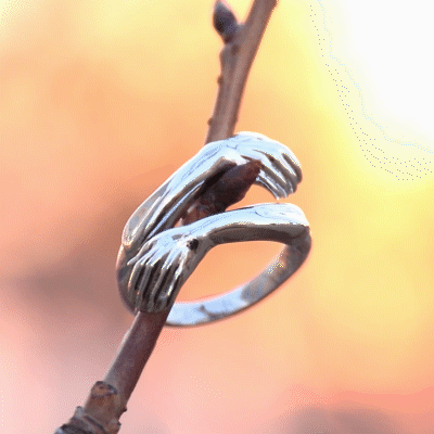 - ‘Hug ring’, designed to look like arms wrapping around your finger. A super-sweet ring with two little hands meeting in a firm hug. This ring has a very meaningful shape; it has no beginning and no end, the symbol of eternity. Wear this ring to empower yourself and as a reminder of the never-ending love of the people in your life. Gift someone you love this lovely ring to send them a hug that they can wear every day!