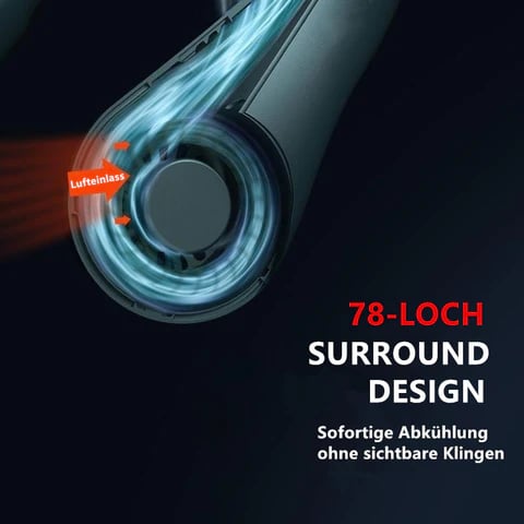 - ✅ SAFETY & 78 AIR OUTLETS: Designed without wings, it can be safely used by children and the elderly. When using the fan, you don't have to worry about your hair getting caught on the fan blades. With 78 air outlets around the neck, it can be used for the entire face, providing enough air to always keep you cool. It is also ideal as a work companion in hot weather.