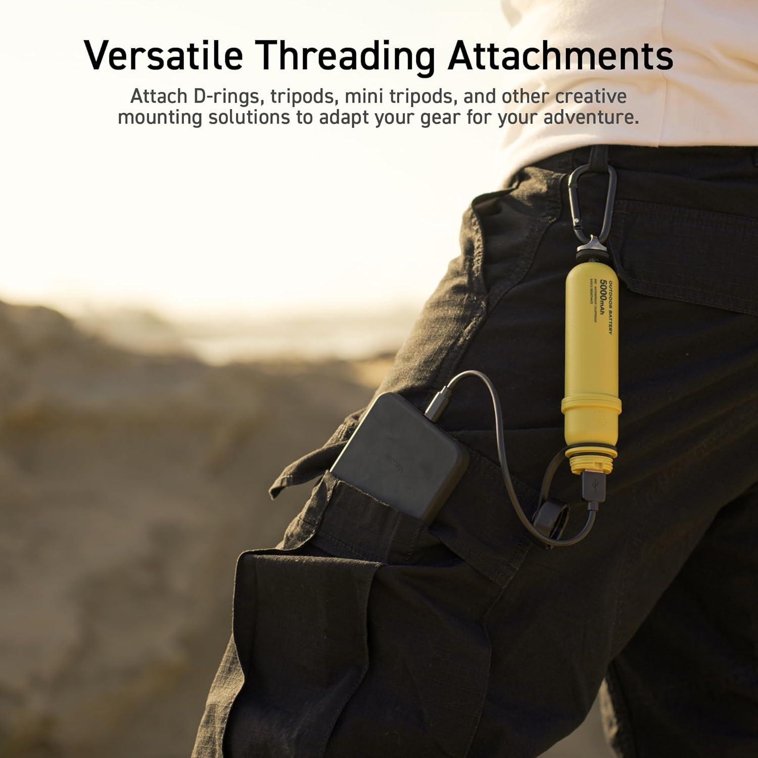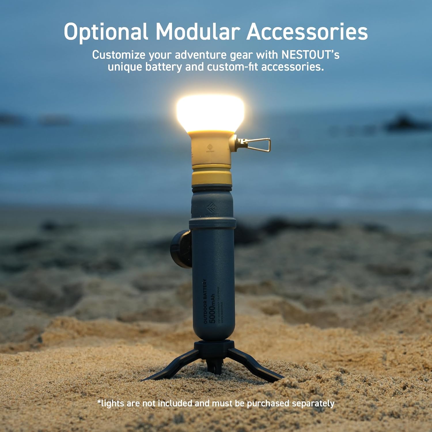 BOTTOM TRIPOD MOUNT - Batteries come with standard ¼ 20” tripod mounts on the bottom so you can attach our NESTOUT mini tripod and lights or use your own.