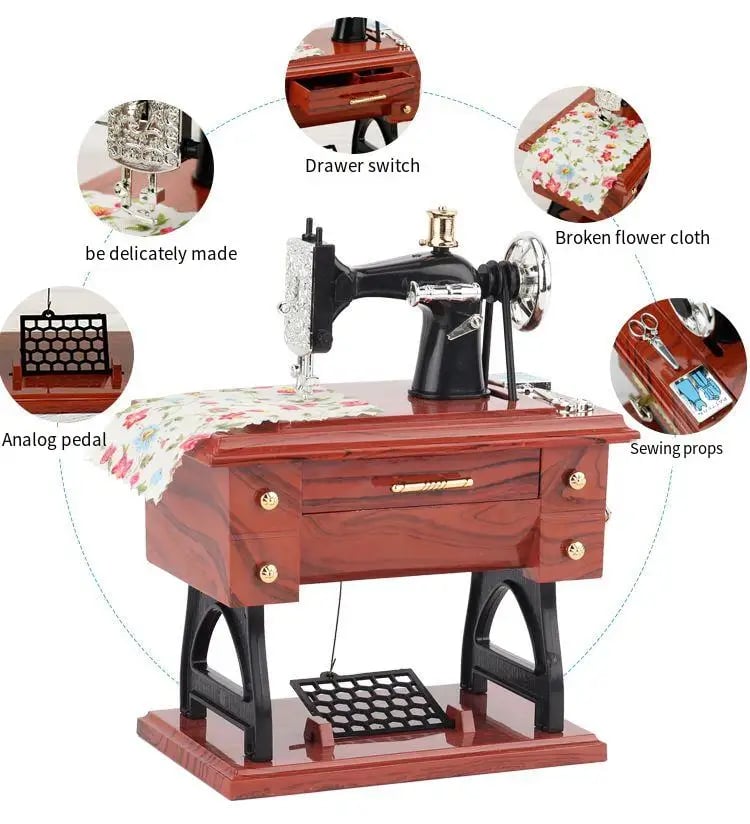 - Creative sewing machine design music box, the shape of a vintage treadle sewing machine