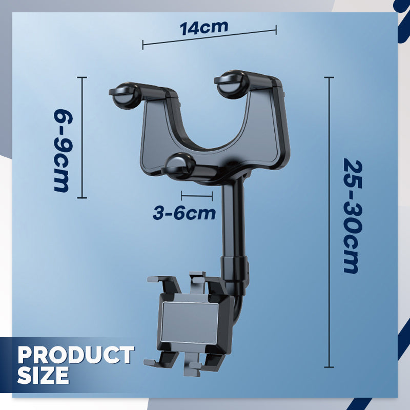 Rearview Mirror Phone Holder for Car - 360° Rotatable and Retractable