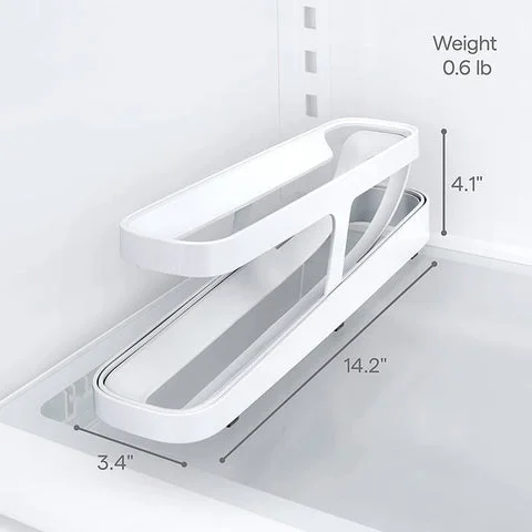 Create and maximize shelf space with this smart design Refrigerator Egg Dispenser. It is ideal for organizing your refrigerator, kitchen pantry, closet and garage. Easy to install and no tools are required. Fits most shelves using adjustable rails and hooks.