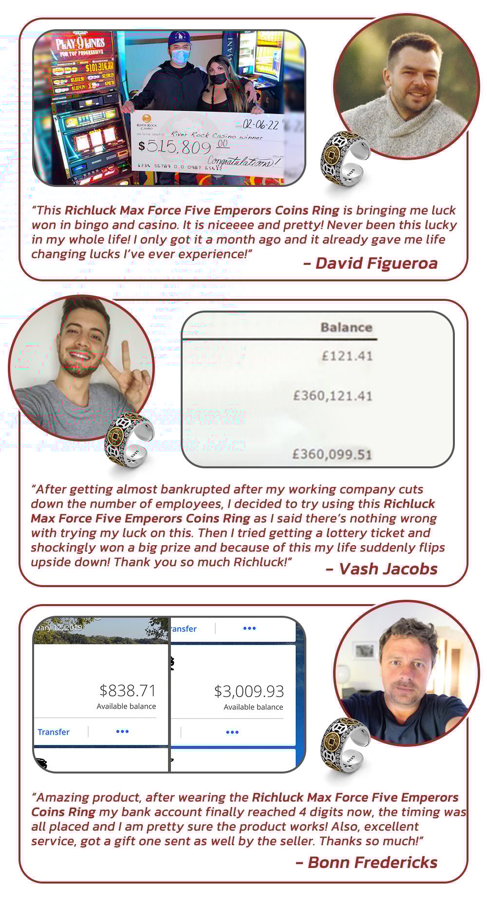 Join the bandwagon of Richluck Max Force Five Emperors Coins Ring successful users and live the Best Life today!
