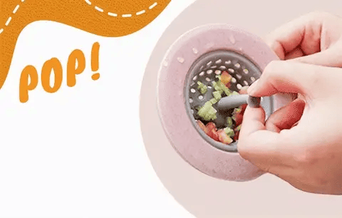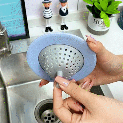 Easily clear all dirty debris with no touching! This smart, durable silicone basket effectively catches all hair, food scraps, kitchen waste, and lets you pull the handle for thorough cleaning!