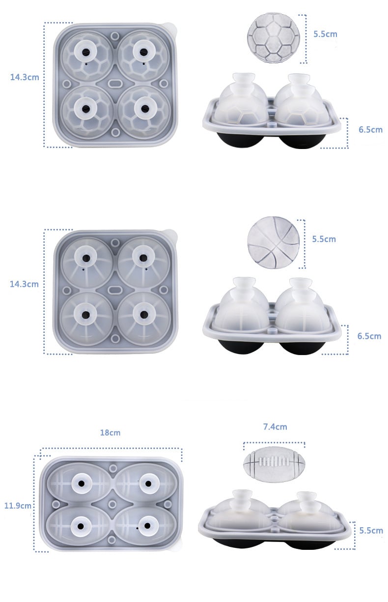 - Ice cube size: square / round / football / basketball- 2" , rugby - 3"