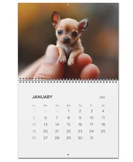 Perfect for animal lovers of all ages, this calendar features a delightful collection of fur babies, including Elephant, Dog, Cat, Monkey, Duck, Cow, Hedgehog, Giraffe, and puppies!
